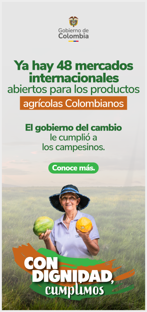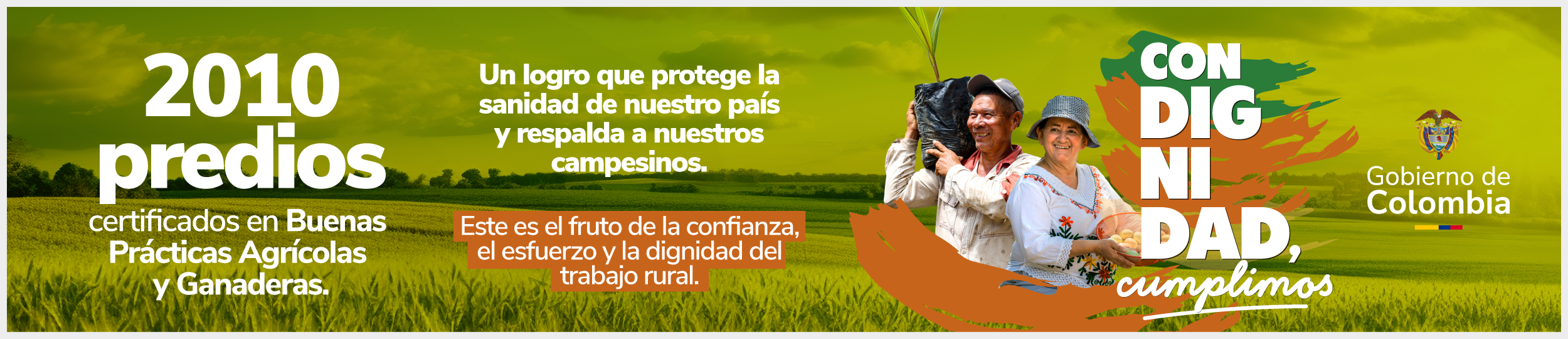 TITULARES Precios de referencia de maíz y soya importados en Colombia Precios mayoristas de la papa en la central de abastos de Bogotá Precio interno de referencia para la compra de café pergamino seco por carga de 125 kilos Colombia apuesta por semillas autorizadas para fortalecer seguridad alimentaria y productividad agropecuaria Precios del ganado bovino comercial en Colombia NOTICIAS DEL DÍA MERCADOS Precios de referencia de maíz y soya importados en Colombia Agricultura y Ganadería octubre 14, 2025 MERCADOS Precios mayoristas de la papa en la central de abastos de Bogotá Agricultura y Ganadería octubre 14, 2025 MERCADOS Precio interno de referencia para la compra de café pergamino seco por carga de 125 kilos Agricultura y Ganadería octubre 13, 2025 TECNOLOGÍA Colombia apuesta por semillas autorizadas para fortalecer seguridad alimentaria y productividad agropecuaria Agricultura y Ganadería octubre 13, 2025 MERCADOS Precios del ganado bovino comercial en Colombia Agricultura y Ganadería octubre 13, 2025 MERCADOS Precios mayoristas de la cebolla y el plátano en la central de abastos de Bogotá Agricultura y Ganadería octubre 13, 2025 MERCADOS Precios mayoristas de la arveja, frijol, habichuela y tomate en la central de abastos de Bogotá Agricultura y Ganadería octubre 13, 2025 AGRICULTURA Productores de cebolla reciben certificaciones que abren la puerta a la exportación septiembre 26, 2025 Leer más Beneficios y alcances de las Áreas de Protección para la Producción de Alimentos septiembre 9, 2025 Leer más Apoyo total a la cadena productiva del arroz septiembre 4, 2025 Leer más El ICA y Conalgodón hacen equipo por la calidad del cultivo en Colombia agosto 25, 2025 Leer más AGROINDUSTRIA Productores de algodón alertan por decreto que terminaría con la siembra de este cultivo en Colombia Agricultura y Ganadería octubre 9, 2025 Gremca y su sindicato, modelo de trabajo que logra sostenibilidad empresarial y ambiental Agricultura y Ganadería septiembre 15, 2025 Empresa palmera certifica sus productos como libres de deforestación Agricultura y Ganadería septiembre 2, 2025 Denuncian ante la SIC maniobras de la industria arrocera para evadir regulación de precios Agricultura y Ganadería agosto 13, 2025 AMBIENTE “Otro Valle del Cauca es posible”: Minambiente Agricultura y Ganadería septiembre 30, 2025 La Comisión Forestal para América Latina y el Caribe traza el rumbo hacia la gestión forestal sostenible Agricultura y Ganadería septiembre 2, 2025 Colombia lidera propuesta internacional para conservar los delfines de río Agricultura y Ganadería julio 22, 2025 Un regreso triunfal: Babillas, tortugas y serpientes recuperan la libertad en Buenaventura Agricultura y Ganadería julio 22, 2025 AVICULTURA Colombia logra un hito histórico: Exportar pollo a Japón Agricultura y Ganadería octubre 8, 2025 Colombia conquista 11 mercados internacionales para exportación de huevo y pollo Agricultura y Ganadería julio 7, 2025 Cuatro razones por las que debe prestarse atención a la gripe aviar Agricultura y Ganadería junio 24, 2025 ICA suspende importaciones de aves vivas, sus productos y subproductos desde Brasil Agricultura y Ganadería mayo 22, 2025 ECONOMÍA El FAG ha respaldado inversiones en proyectos agropecuarios por $25 billones durante este gobierno Agricultura y Ganadería septiembre 30, 2025 Continua a todo ritmo programa de alivios financieros para productores de papa Agricultura y Ganadería septiembre 22, 2025 Con dignidad el campo colombiano se abre paso en los mercados internacionales Agricultura y Ganadería septiembre 19, 2025 Alzas en carne y leche impulsan el IPAP de la BMC Agricultura y Ganadería septiembre 5, 2025 EMPRESARIAL Energías limpias cambian vidas de sucreños y generan premio internacional para Sucre Agricultura y Ganadería octubre 6, 2025 Leer más Asocolflores premió las variedades de flores que comenzarán a marcar tendencia en los mercados internacionales Agricultura y Ganadería octubre 6, 2025 Leer más ICA, aliado para la exportación de vegetales frescos Agricultura y Ganadería agosto 20, 2025 Leer más Chile abre sus puertas al suero fetal bovino colombiano Agricultura y Ganadería agosto 12, 2025 Leer más GANADERÍA Eventos inéditos marcarán la conmemoración de 500 años de la ganadería en Colombia Agricultura y Ganadería septiembre 24, 2025 Leer más Boyacá, Cundinamarca y Antioquia, los departamentos que más generan empleo en el sector ganadero colombiano Agricultura y Ganadería septiembre 1, 2025 Leer más FEDEGÁN celebrará 500 años de la llegada de los primeros bovinos a Colombia Agricultura y Ganadería agosto 29, 2025 Leer más El ICA atiende brotes de rabia de origen silvestre y encefalitis equina en Casanare Agricultura y Ganadería agosto 12, 2025 Leer más INTERNACIONAL IICA y CAN abrieron sala situacional y observatorio de políticas agrícolas Agricultura y Ganadería septiembre 1, 2025 Leer más AZÚCAR: Análisis de las tendencias de la oferta, la demanda y los flujos comerciales mundiales Agricultura y Ganadería agosto 25, 2025 Leer más La ganadería de las Américas, fundamental para seguridad alimentaria: IICA Agricultura y Ganadería agosto 20, 2025 Leer más Radiografía del mercado global de la frambuesa Agricultura y Ganadería agosto 18, 2025 Leer más MERCADOS Precios de referencia de maíz y soya importados en Colombia Agricultura y Ganadería octubre 14, 2025 Leer más Precios mayoristas de la papa en la central de abastos de Bogotá Agricultura y Ganadería octubre 14, 2025 Leer más Precio interno de referencia para la compra de café pergamino seco por carga de 125 kilos Agricultura y Ganadería octubre 13, 2025 Leer más Precios del ganado bovino comercial en Colombia Agricultura y Ganadería octubre 13, 2025 Leer más PANORAMA El ICA rinde cuentas: llegó la hora de recoger la cosecha Agricultura y Ganadería octubre 9, 2025 Leer más PROFLORA 2025: Las flores colombian