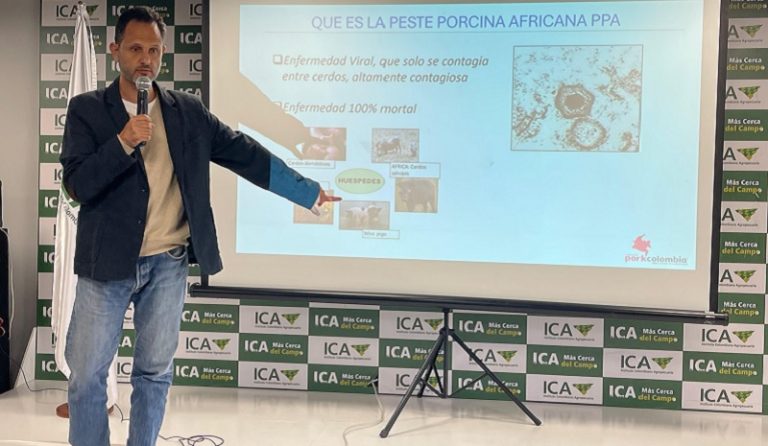 (ICA – Viernes 19 de septiembre de 2025).- Un compromiso constante ha tenido diferentes instituciones para prevenir la entrada de la Peste Porcina Africana a Colombia. En este encuentro, el ICA resaltó la importancia de contar con el apoyo de los ministerios de Relaciones Exteriores, Salud y Comercio Exterior, Migración Colombia, INVIMA, DIAN y la DIMAR, donde se ha logrado bloquear el ingreso con medidas rigurosas por parte del sector fronterizo, aéreo y marítimo.