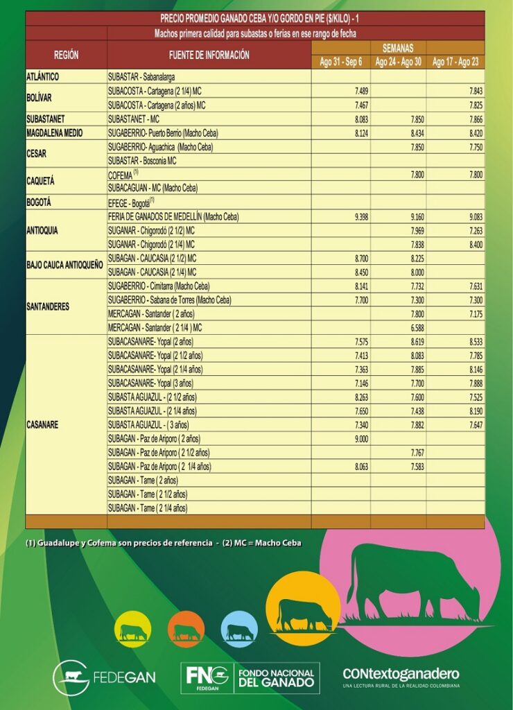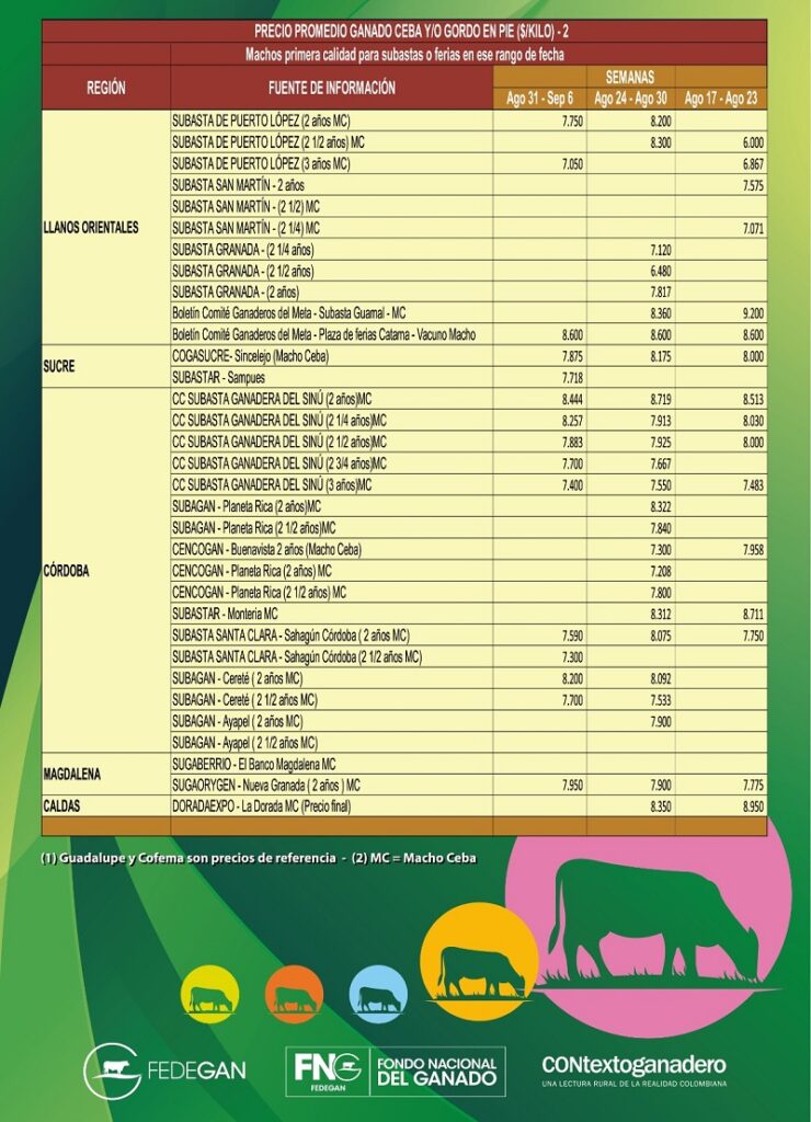 Advertimos que estos precios son de referencia porque varían de acuerdo con la oferta y la demanda, la calidad del producto y la región donde se comercialicen.