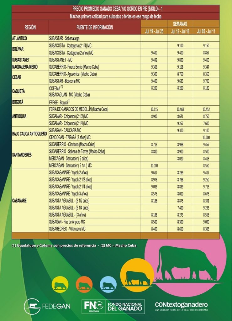 Advertimos que estos precios son de referencia porque varían de acuerdo con la oferta y la demanda, la calidad del producto y la región donde se comercialicen.