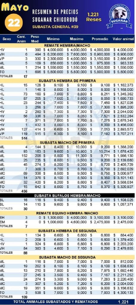 (BMC – Lunes 26 de mayo de 2025)- Presentamos la tabla de precios indicativos de ganado bovino comercial (Ganado macho gordo) en nueve departamentos del país, suministrados por la Bolsa Mercantil de Colombia.